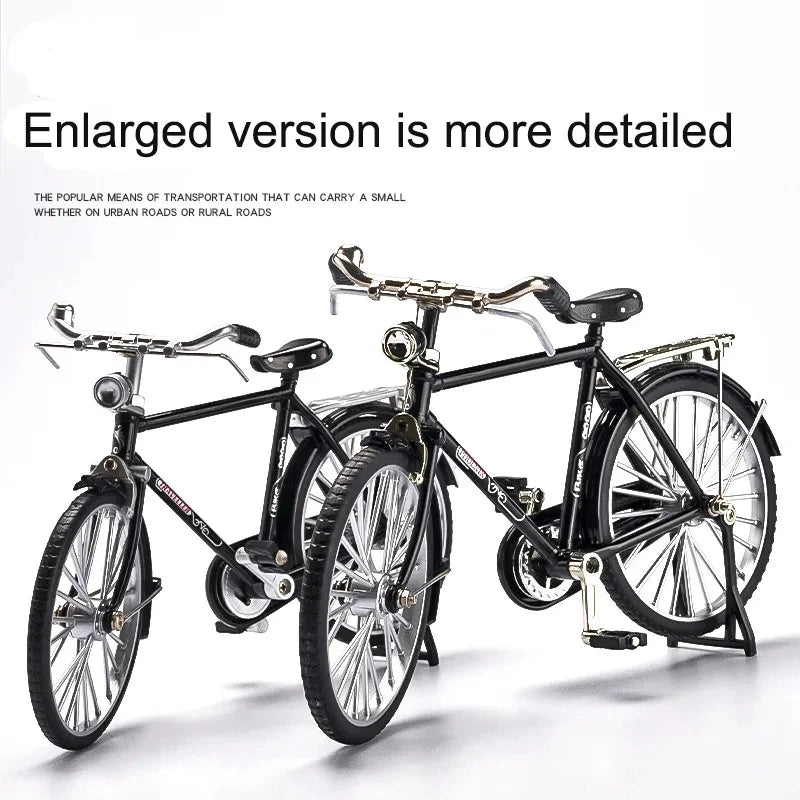Das Fahrrad ist dem Prototypendesign entsprechend exquisit verarbeitet, die Form realistisch und in einer separaten Farbbox verpackt. Der einzigartige Retro-Stil ist selten auf dem Markt. Sie können die gewünschte antike Szenerie mit dem Fahrrad nachbilden. Die verschleißfesten Materialien Zinklegierung und Kunststoff erhöhen die Lebensdauer des Spielzeugs. Es sieht realistischer aus und kann mit Ihrer Minipuppe verwendet oder als Simulationsszene hinter Ihrem Spielzeugauto aufgehängt werden. Dieses Geschenk eignet sich hervorragend für ältere Menschen, um schöne Erinnerungen wachzuhalten. Kinder können mit dem Spielzeug Rollenspiele spielen.